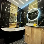 Do dyspozycji Gości Allure Galaxy Centrum Aparthotel patio i balkon, żelazko z deską do prasowania i klimatyzacja, a także nowoczesne udogodnienia, takie jak TV i telewizja kablowa z dostępem do filmów. Oprócz sofy, we wnętrzu znajduje się okna dźwiękoszczelne. Łóżka wyposażone są w poduszki antyalergiczne miękkie lub twarde. W łazience znajdują się oddzielna toaleta, wanna i umywalka, jak również suszarka do włosów i ręczniki.